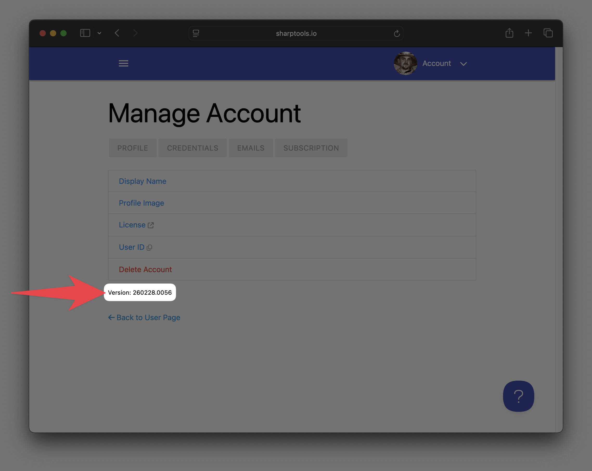 - Go to your User Page > Manage Account and check the version at the bottom of the page. It should show