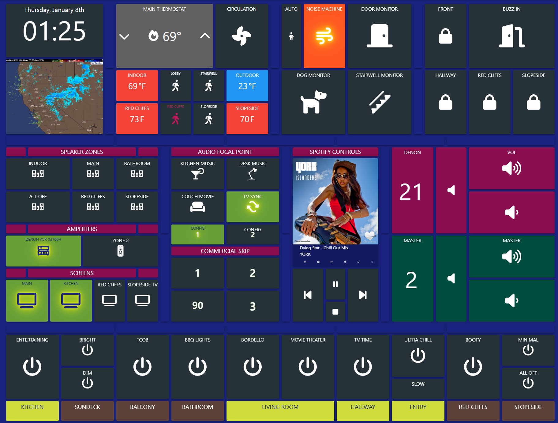 Setting up this dashboard on SharpTools so that I could have those header tiles, i.e. “SPOTIFY CONTROLS” was a nightmare where I had to create a dashboard with 66 columns.