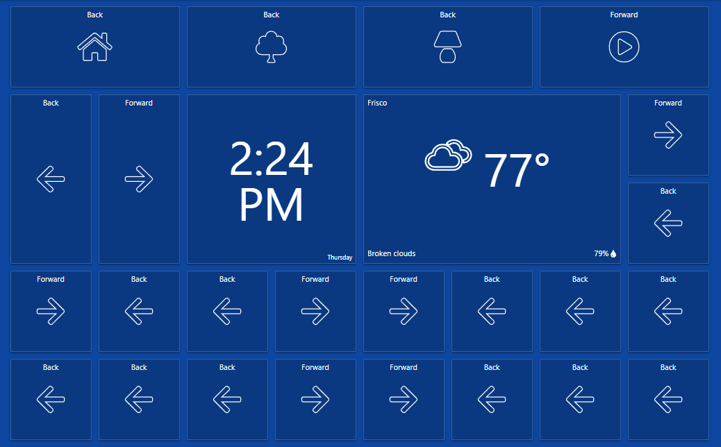 I see you have some success with 8x5 but I’m pretty happy with my layout, but I might give it a shot and see, however, it’s really more info than I need on the screen at this time. Guess I could have really big buttons for the blind or something…