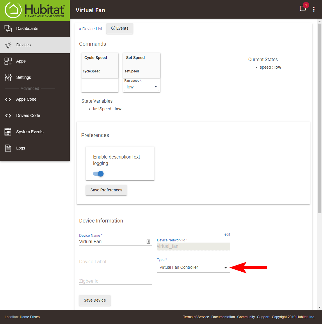 If that doesn’t help, can you please send over a screenshot of the device details page in Hubitat? I’d like to confirm that the device is showing the right details and the new device type is showing as selected under Device Information: