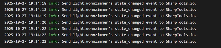 What to the SharpTools Add-On logs look like in Home Assistant? Are you seeing the on/off events getting triggered and attempted to be sent over to SharpTools? Is there anything quirky about that like out-of-order events, excessive on/off events, etc?